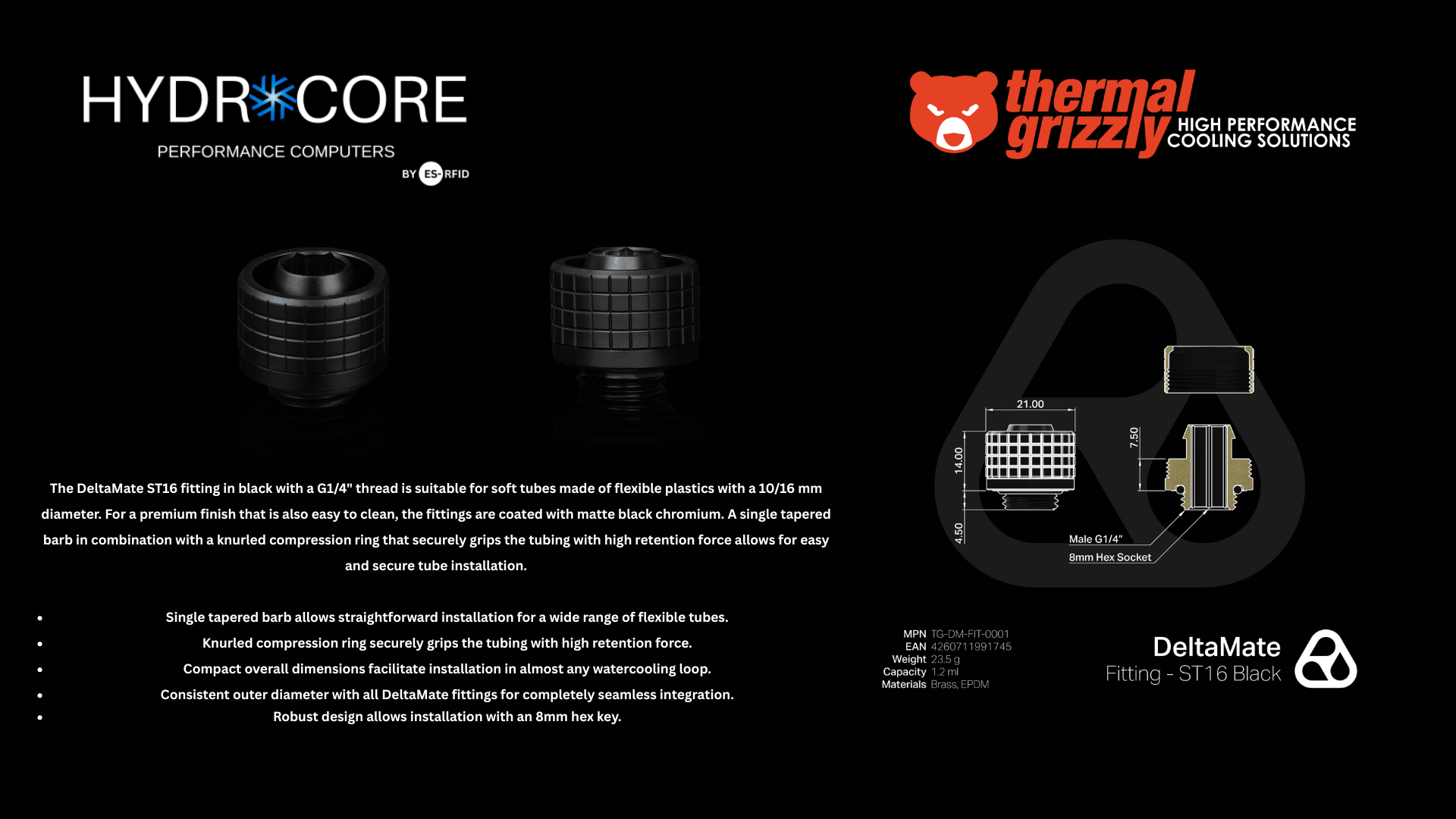 Thermal Grizzly DeltaMate Fitting - HT16 - Black